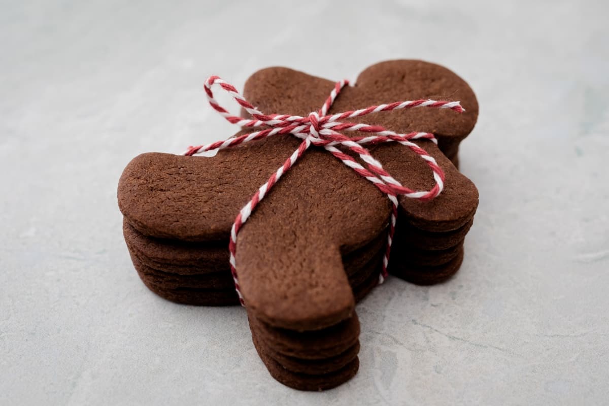 Making gingerbread cookies is a ritual that for me signals the official start of the holiday season. I love every step of the process: the forming of the dough, the cookie-cutting, the baking and decorating, the biting off of the little heads. This is one of my favorite holiday doughs – it’s unmistakably gingerbread, but with a touch of chocolate flavor from the addition of cocoa powder. Because the dough has a lot of butter in it, it is somewhat delicate, so cutting out the cookies and transferring them to the baking sheet should be done while the dough is cold and with a degree of care. But the extra effort it’s worth it, because the resulting cookies are tender, delicious and full of holiday cheer.